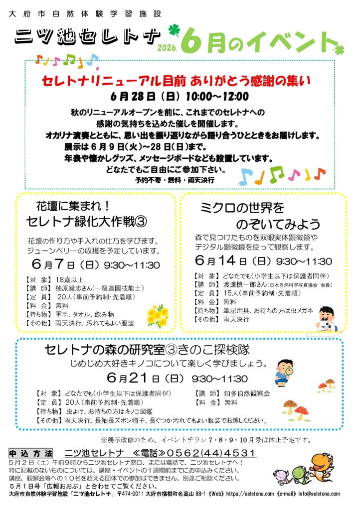 セレトナ窓口、またはお電話0562-44-4531でお申し込みください。