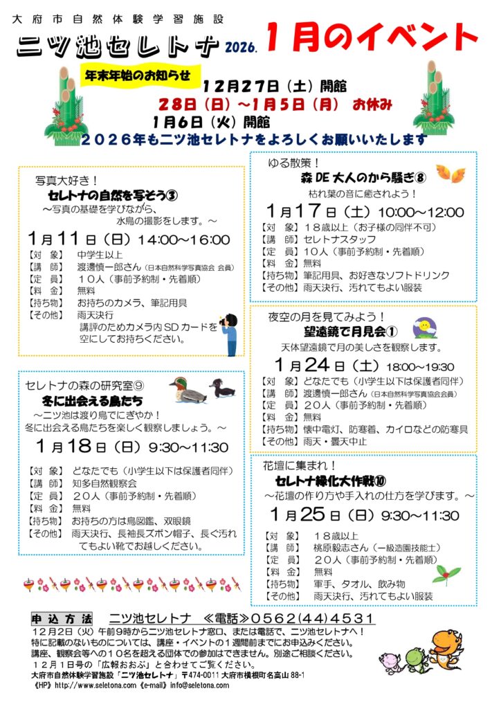 セレトナ窓口、またはお電話0562-44-4531でお申し込みください。