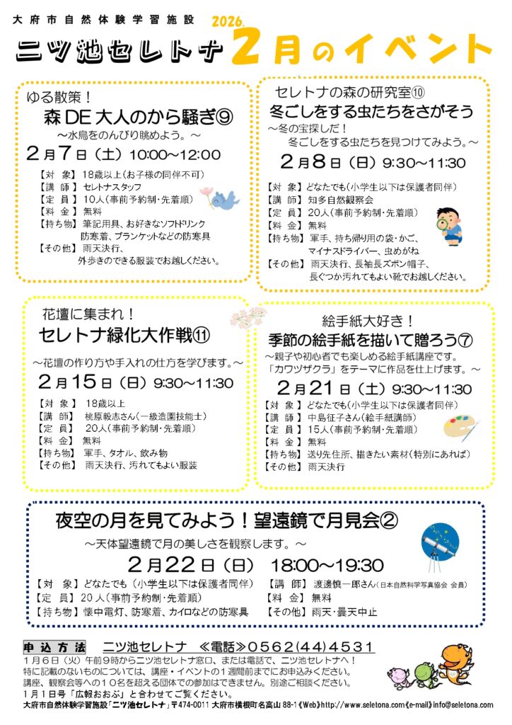 セレトナ窓口、またはお電話0562-44-4531でお申し込みください。